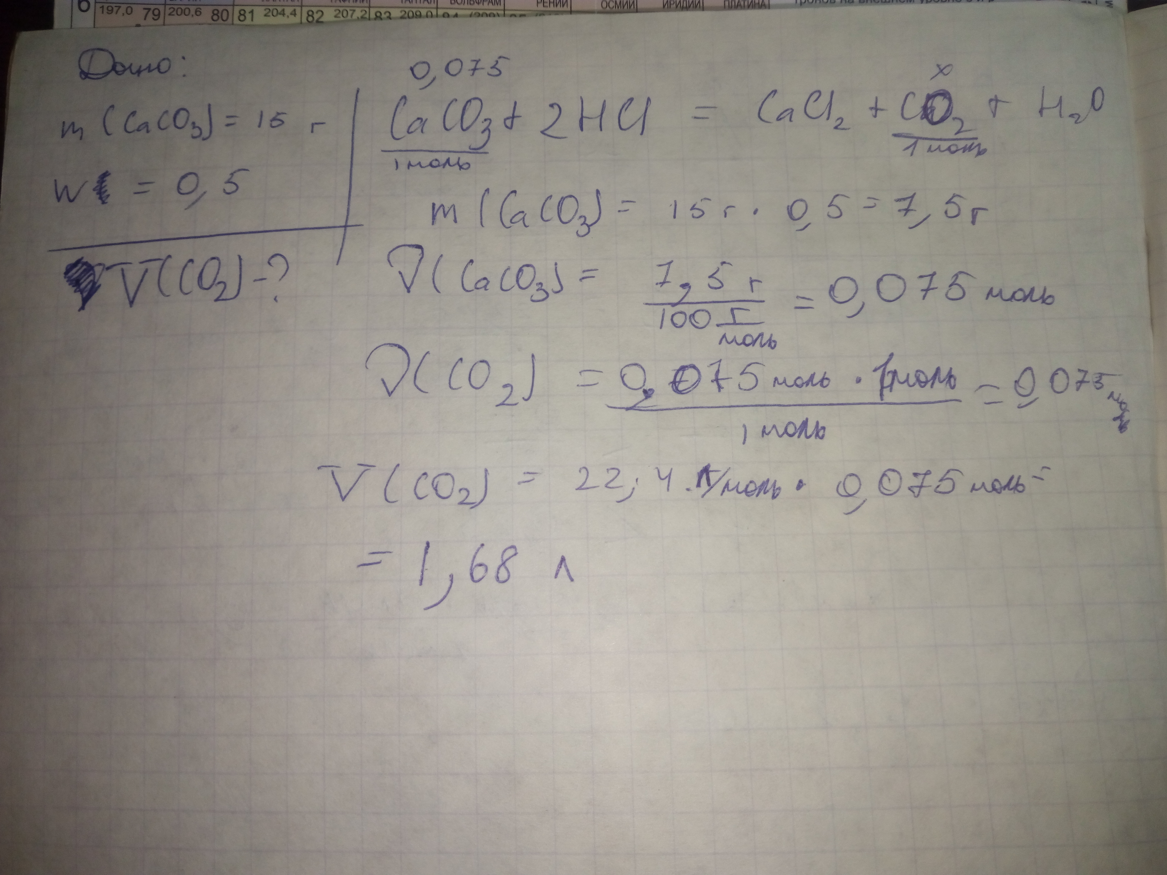 Какой объем углекислого газа (при н.у) выделиться при взаимодействии 15г карбоната кальция,содержащего 5% примесей,с избытком соляной кислоты?
