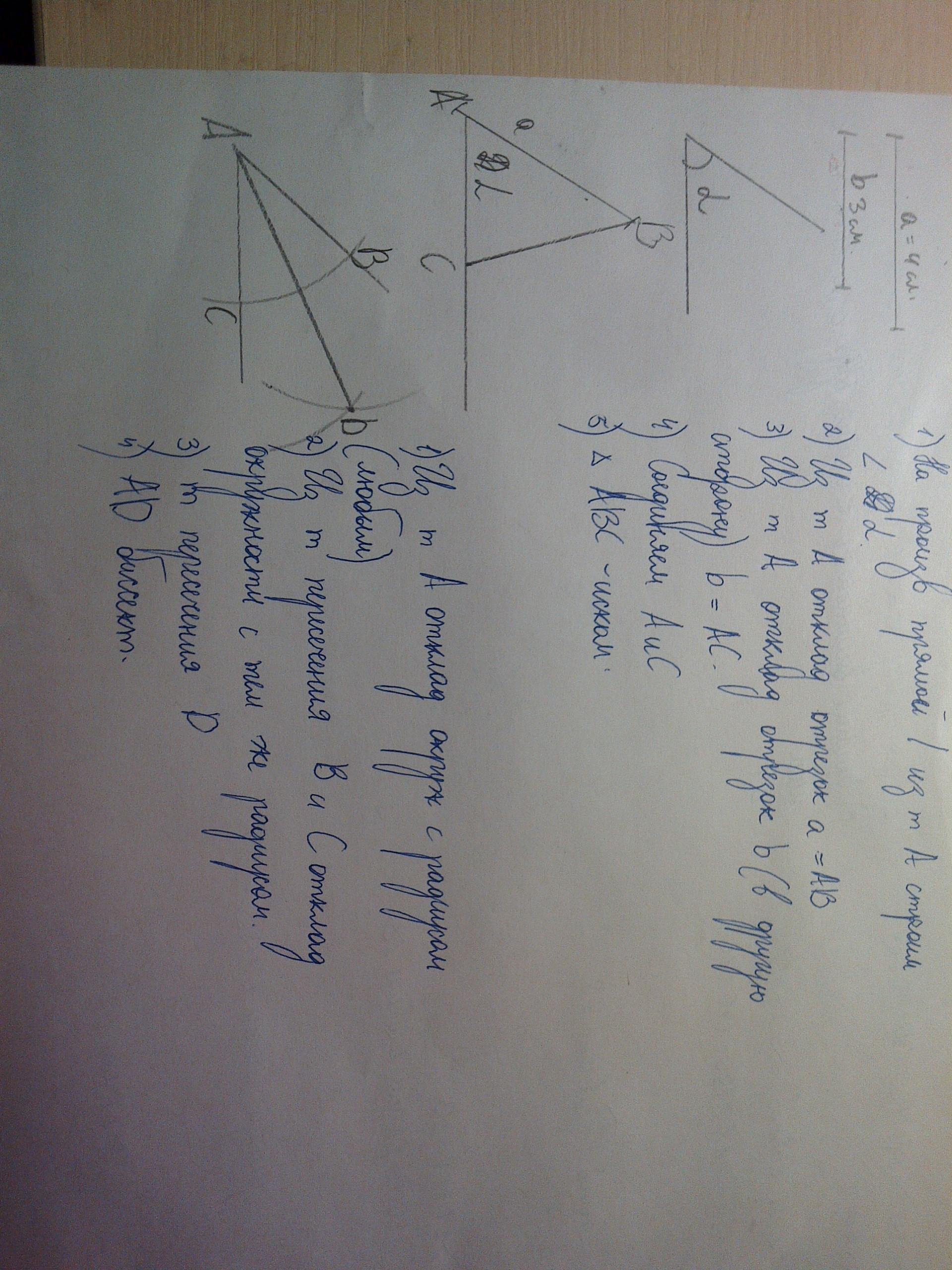 a) постройте треугольник по двум сторонам и углу между ними;