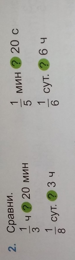 1/3ч = 20 мин, 1/8 сут. > 3 ч, 1/5 мин < 20 с, 1/6 сут. < 6 ч