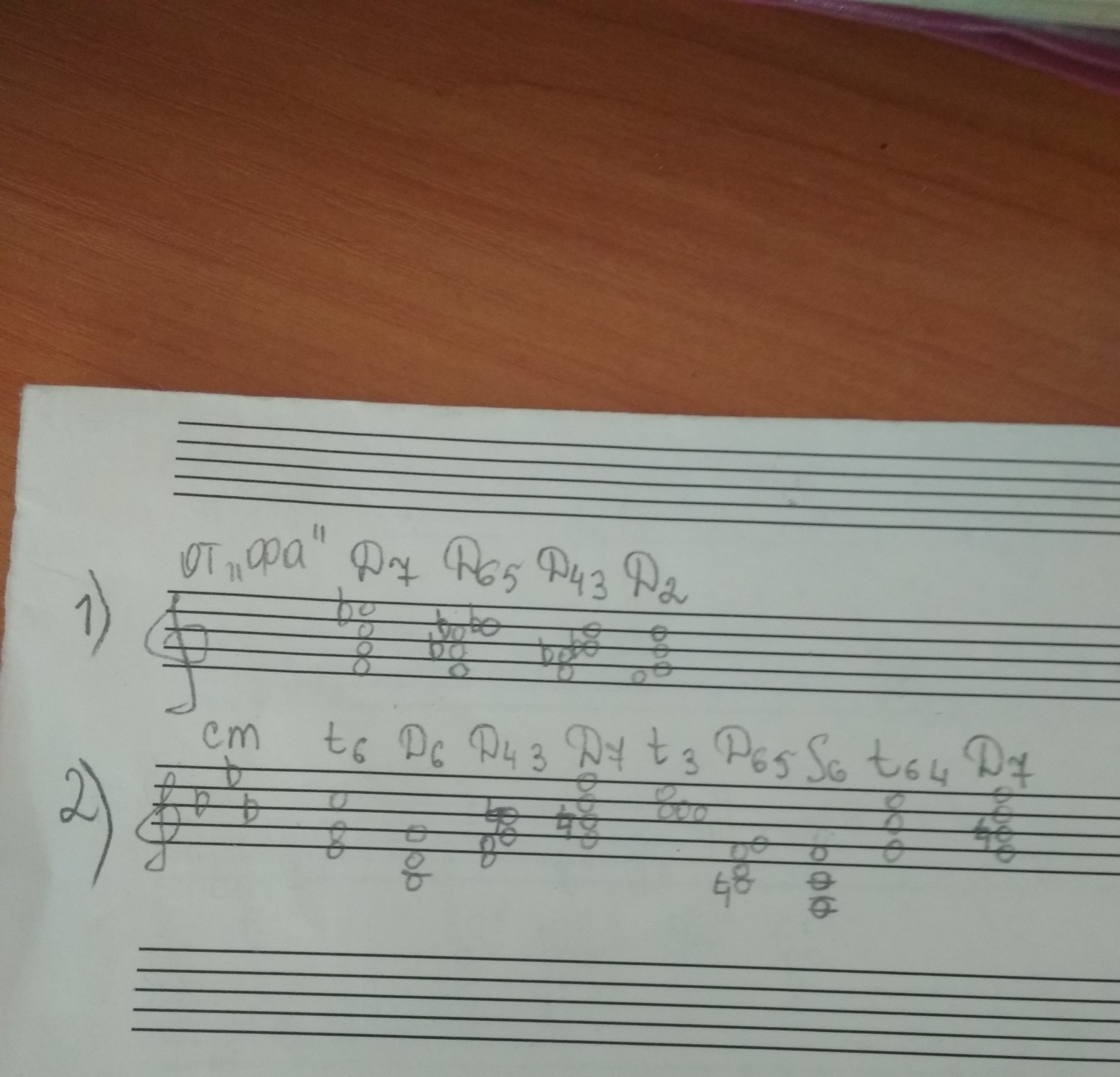1)построить акорды от звука фа: D7, D5/6, D3/4, D2.