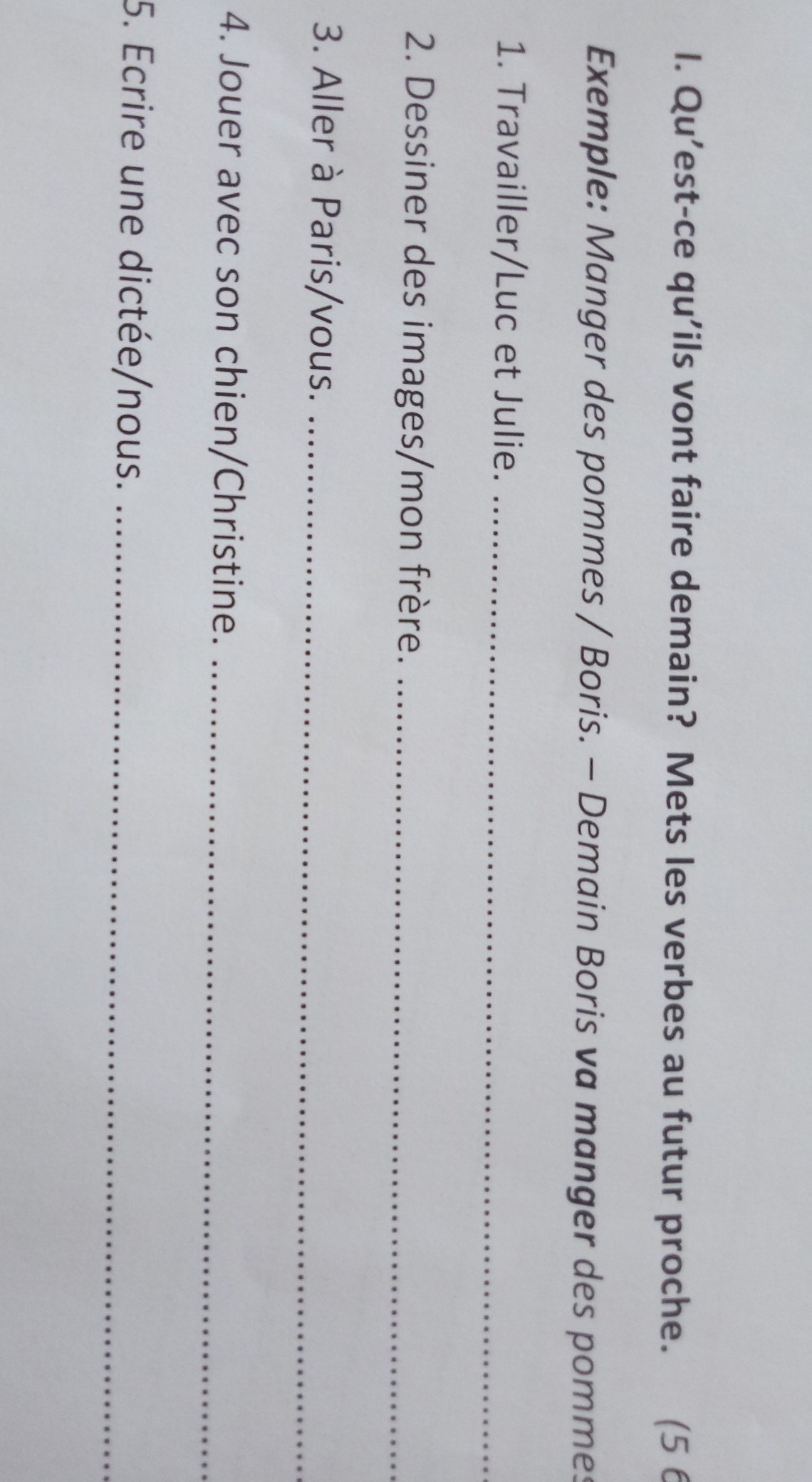 5. Demain nous allons écrire une dictée.