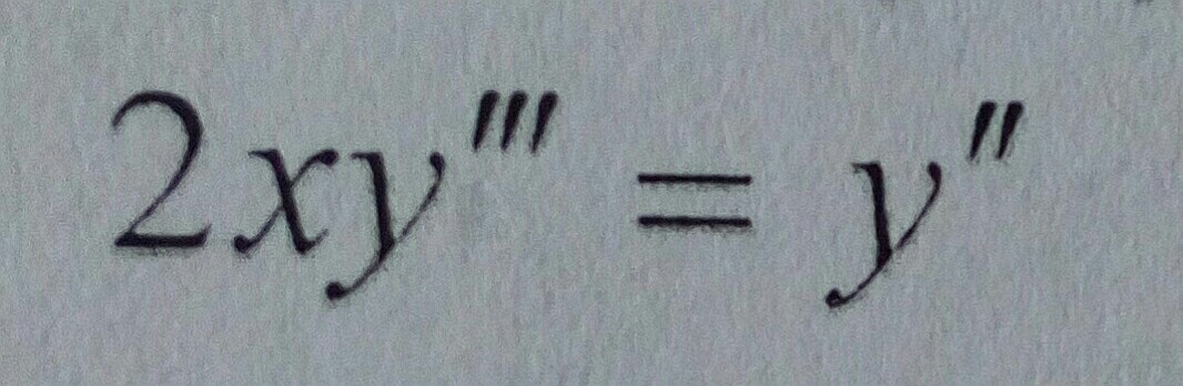 Положим z=y'', тогда y'''=z' и уравнение примет вид: 2*x*z'=z. А так как z'=dz/dx, то это уравнение можно записать в виде dz/z=1/2*dx/x. Интегрируя обе части, получаем ln/z/=1/2*ln/x/+1/2*ln/C1/=ln√/x*C1/, где С1>0 - произвольная постоянная. Отсюда z=√C1*x. Тогда y'=∫z*dx=√C1*∫√x*dx=2/3*√C1*√x³+C2, y=∫y'*dx=2/3*√C1*∫√x³*dx+C2*∫dx=4/15*√C1*√x⁵+C2*x+C3. Проверка: y'=2/3*√C1*√x³+C2, y''=√C1* √x, y'''=√C1/(2*√x), 2*x*y'''=√C1*x=y'' - решение удовлетворяет уравнению. Ответ: y=4/15*√(C1*x⁵)+C2*x+C3.