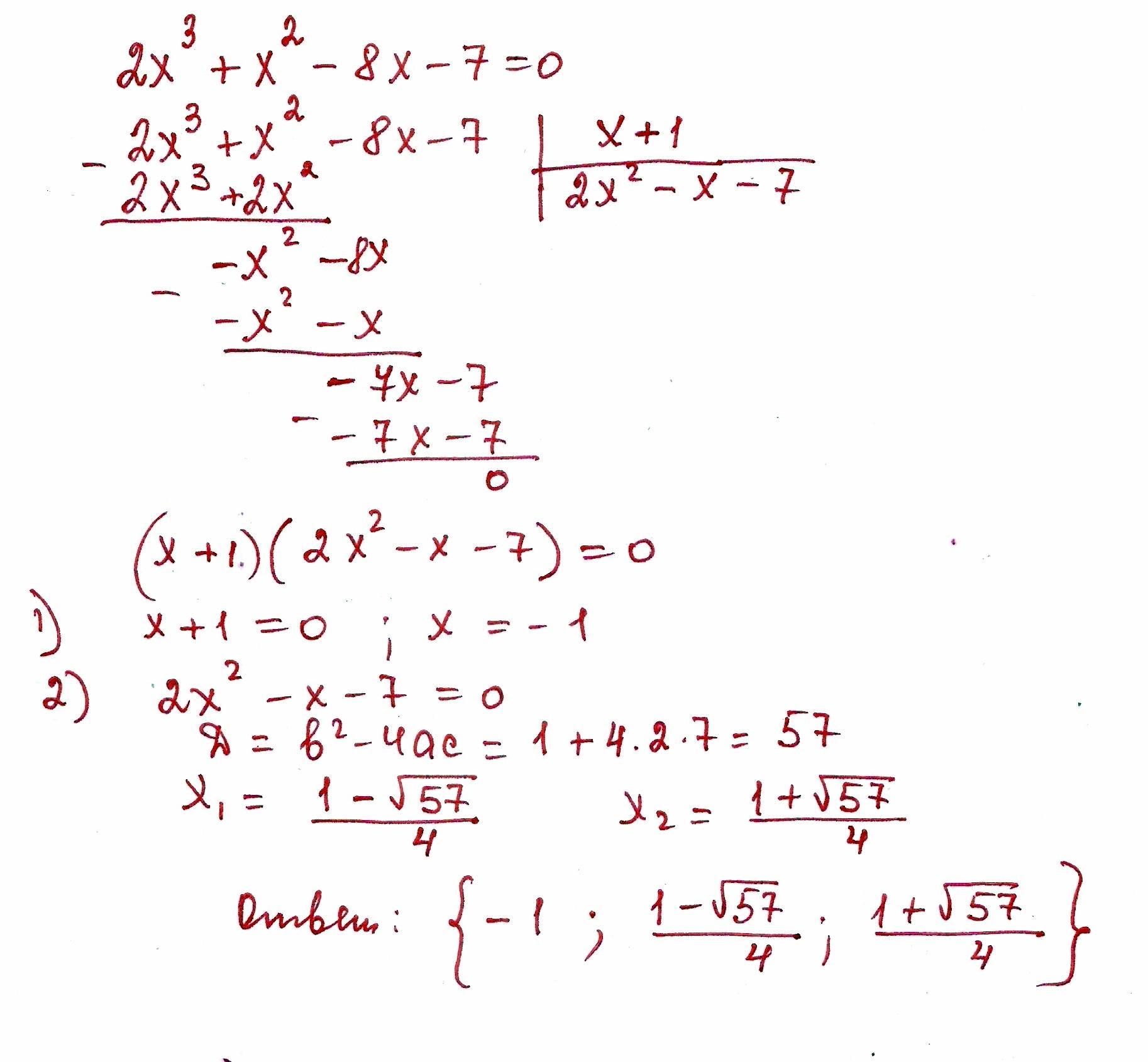 2x³ + x² - 8x - 7 = 0