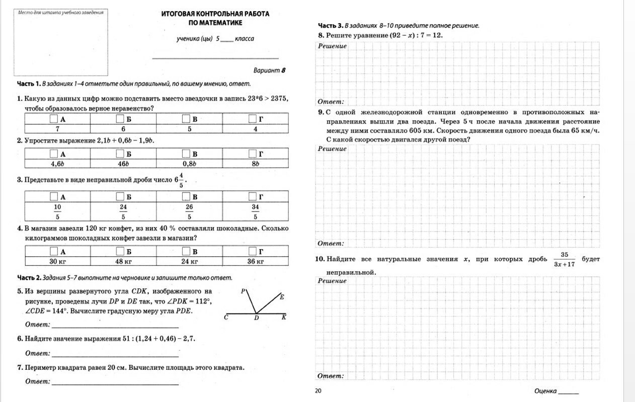 7). P = 4a => a = P/4 = 20:4 = 5 (см)