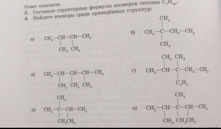 Изомеры: а,б и г, e