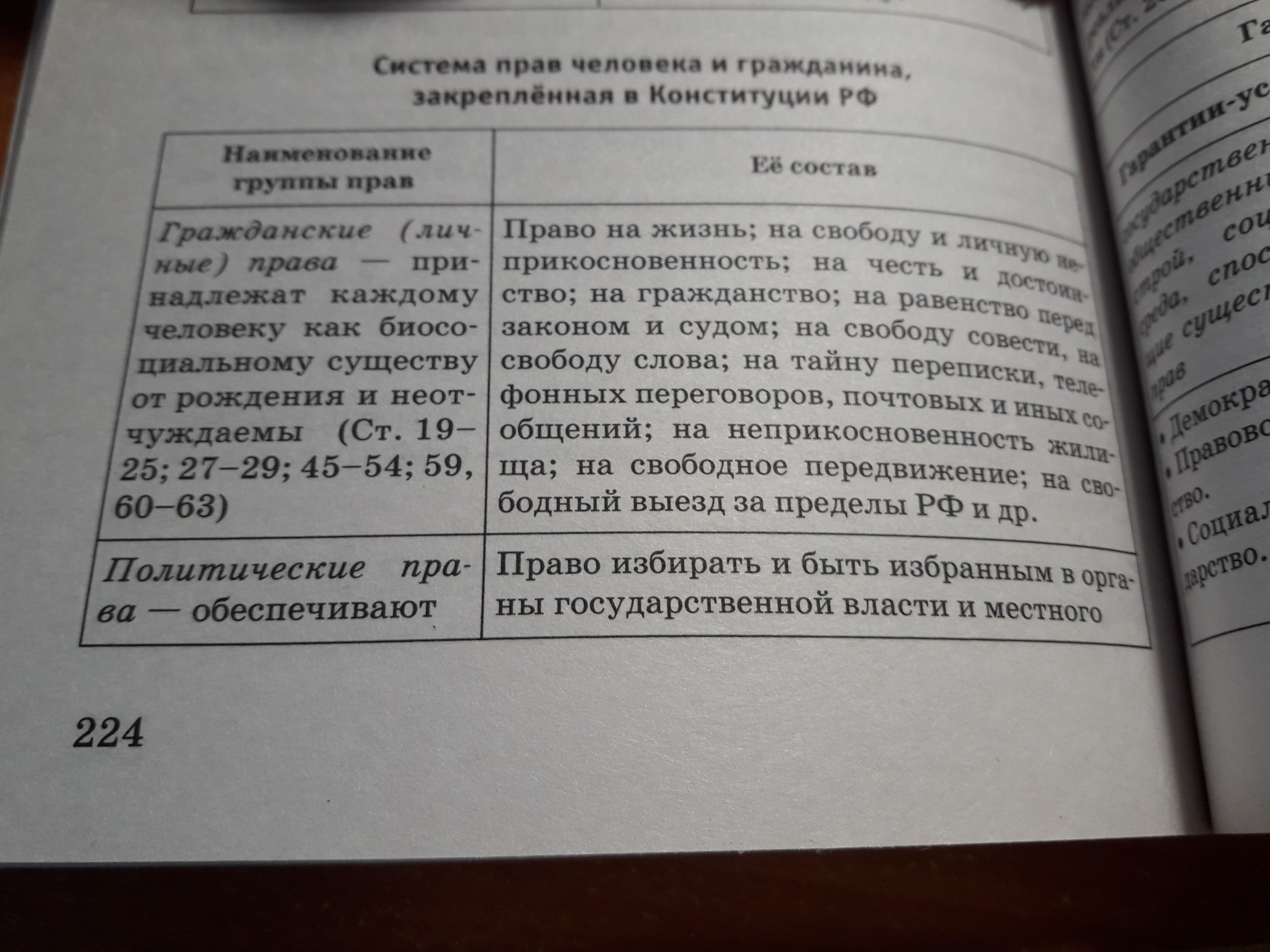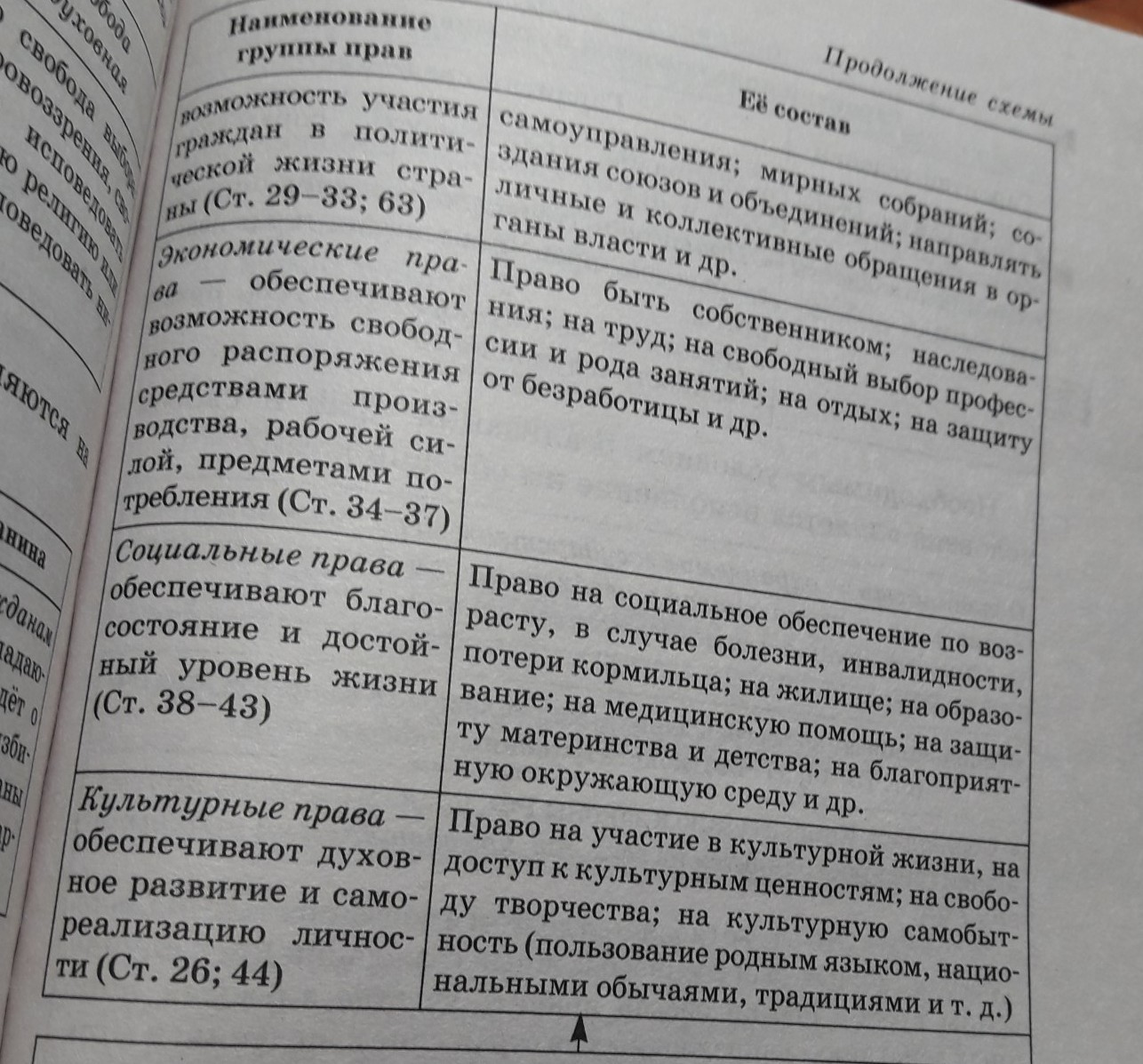 заполнить таблицу "Конституционные права " , заполнить 5 колонок (гражданские, политические, экономические, социальные, культурные).