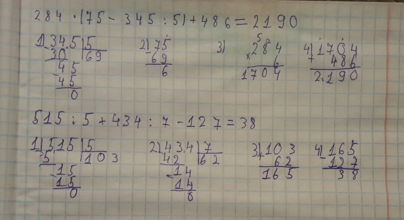 515÷5+434÷7-127=38