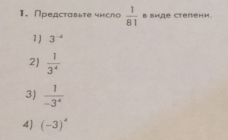 1/81=1/3^4=3^-4 там два ответа подходят, но математически грамотно будет: 3^-4