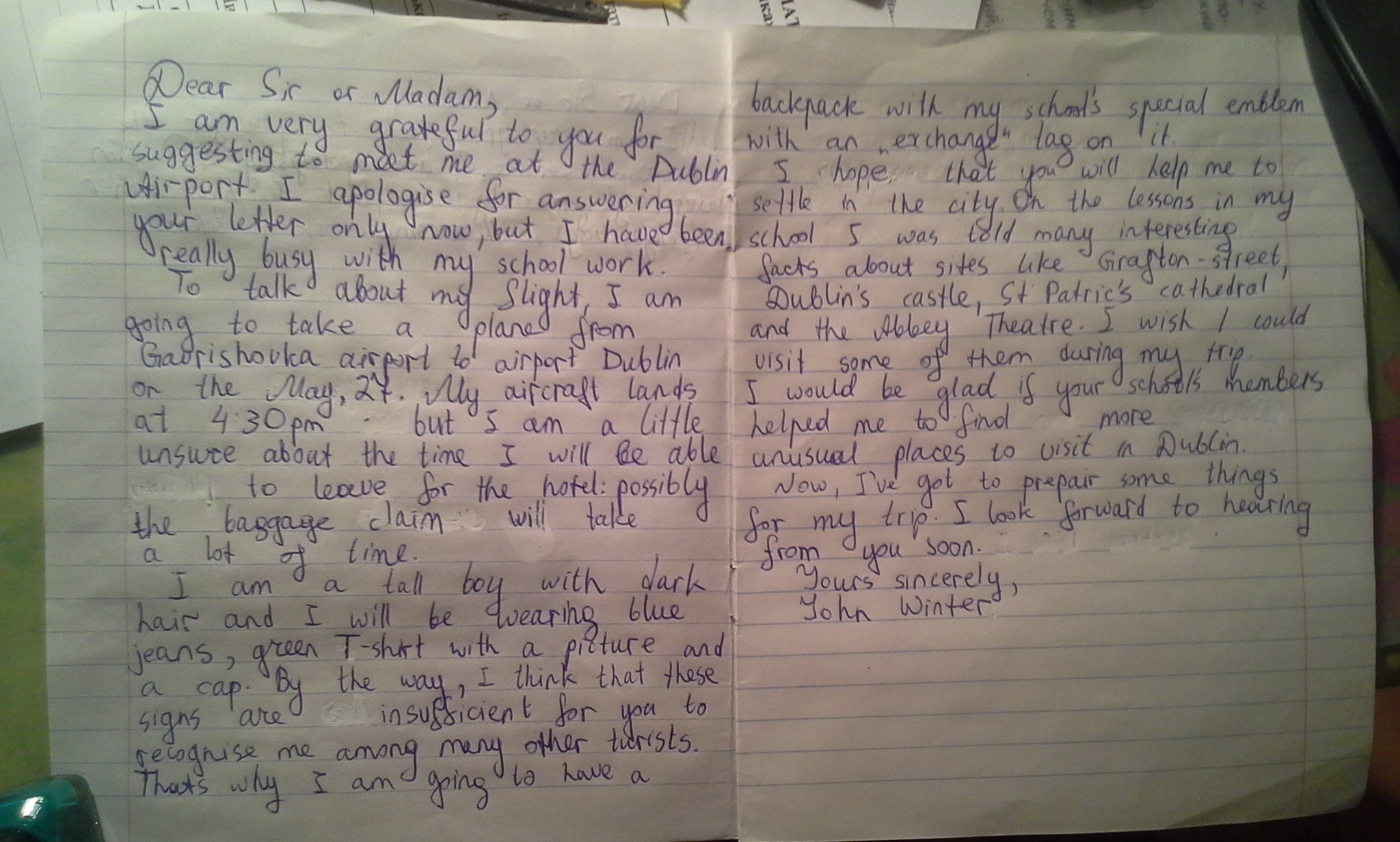 письмо деловое или обычное? и ты пишешь типа от имени всей школы или от себя самого?