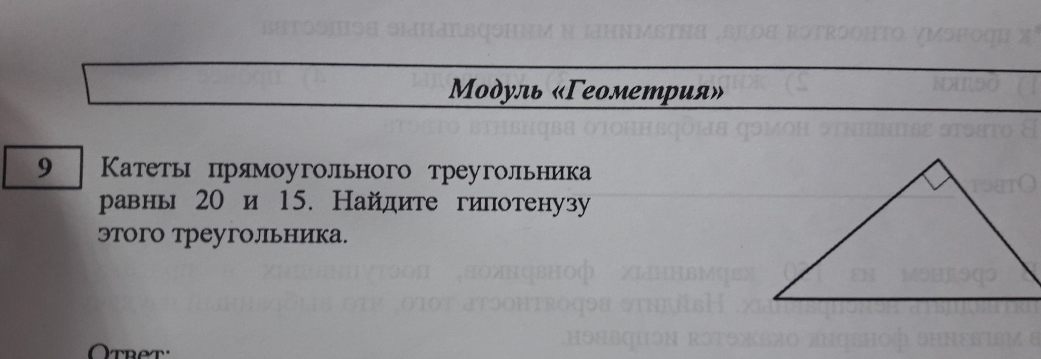 катеты прямоугольного треугольника равны 20 и 15 найдите гипотенузу этого тругольника