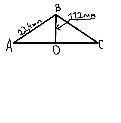 OB видимо высота. Треугольник АОВ прямоугольный. Катет в 2 раза меньше гипотенузы => угол ОАВ=30 градусов. Углы при основании равны. Третий угол 180-30-30=120 градусов