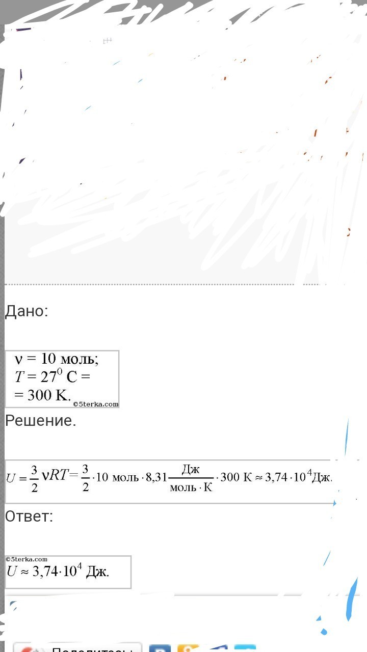 Какова внутриняя энергия одноатомного идеального газа в количестве 20 молей при температуре 27 градусав???