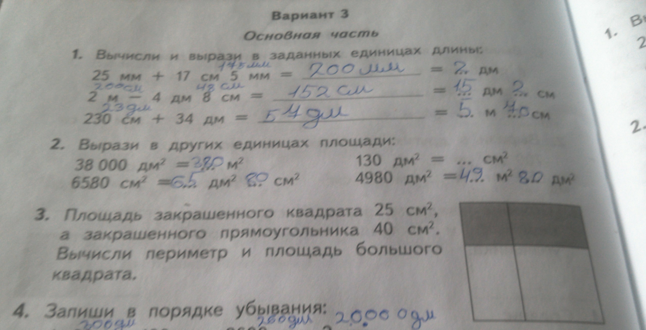 площадь закрашенного квадрата 25см²,а запрещённого прямоугольника 40 см².Вычисли периметр и площадь большого квадрата.