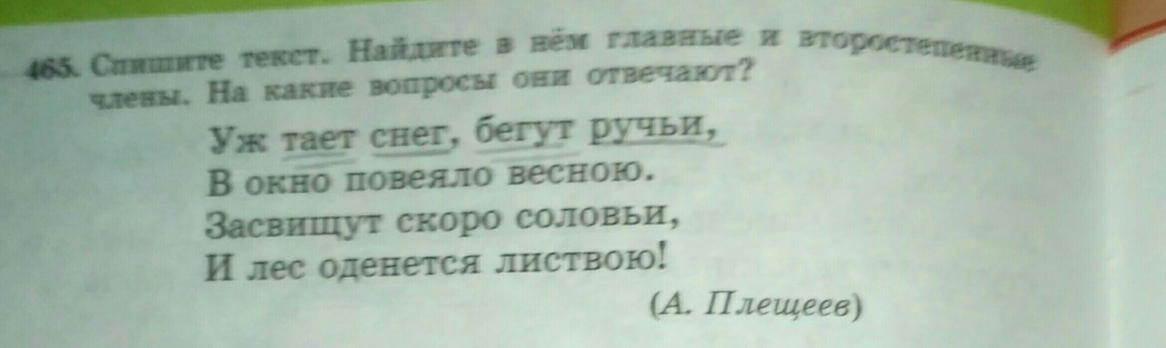 (Что?) ручьи (Что делают?) бегут-главные члены;
