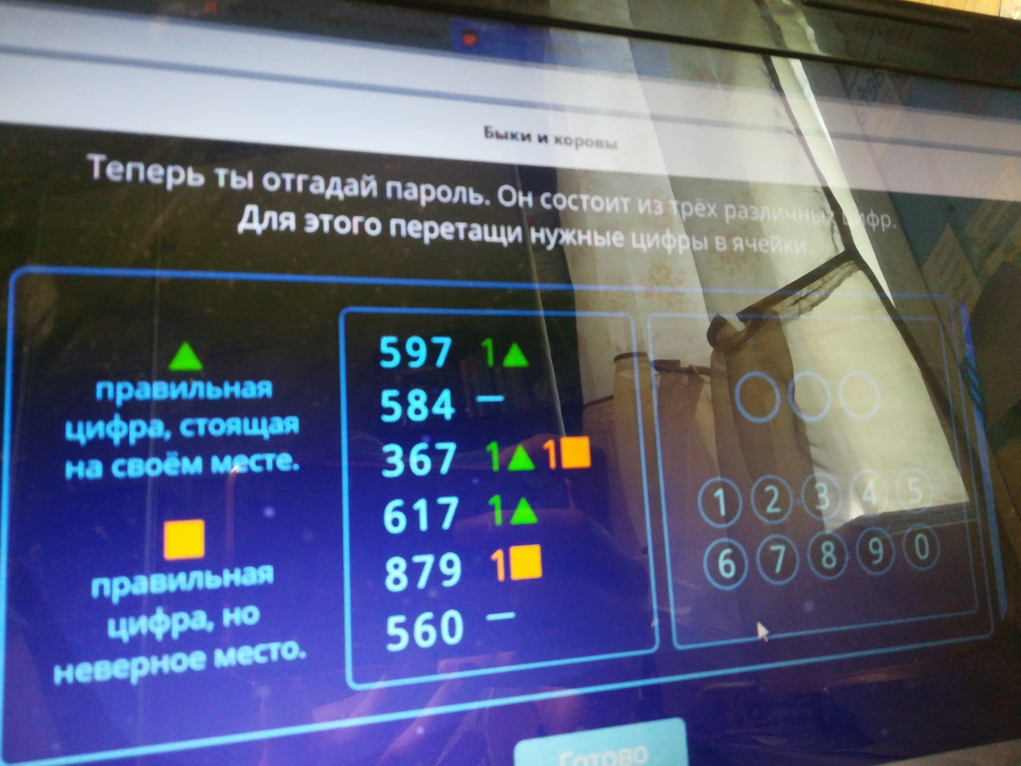 теперь ты отгадай пароль он состоит из трех различных цифр. для этого перетащи нужные цифры в ячейки