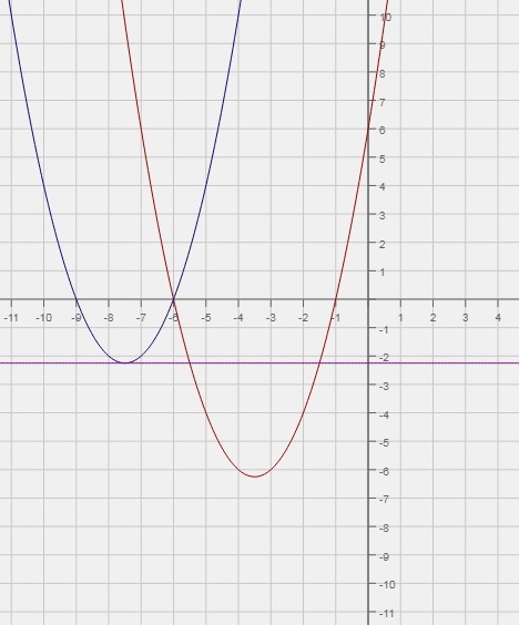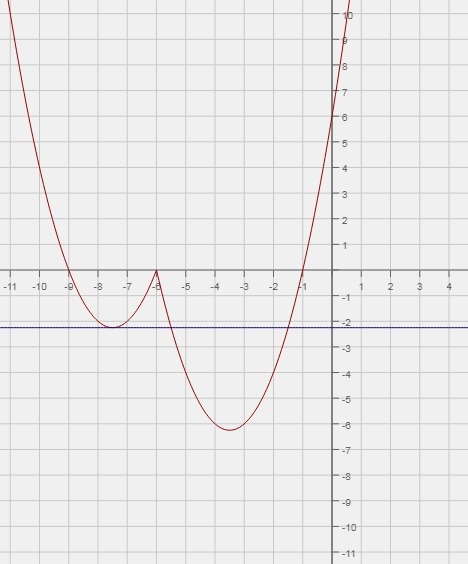 Вычисляем вершину параболы графика, которая ближе всего к оси OX(если график функции y = m будет проходить через вершину параболы, которая ближе всего к оси OX, тогда он будет проходить через ветви параболы(другие две точки) которая расположена дальше от оси OX)