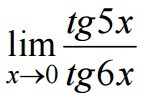 lim(x —> 0) tg(5x)/tg(6x) = lim(x —> 0) 5x/6x = 5/6