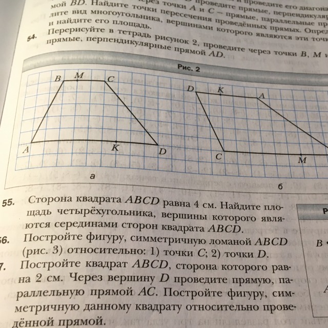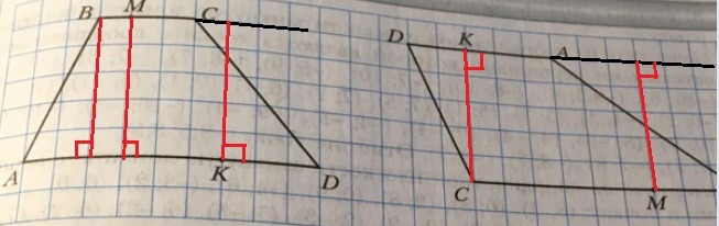 Перерисуйте в тетрадь рисунок 2, проведите через точки B , M и K прямые, перпендикулярные прямой AD