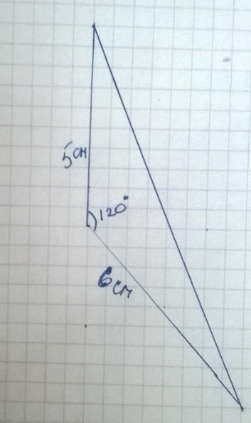 Чертишь угол 120 градусов, потом продолжаешь стороны по 5 см и 4 см.