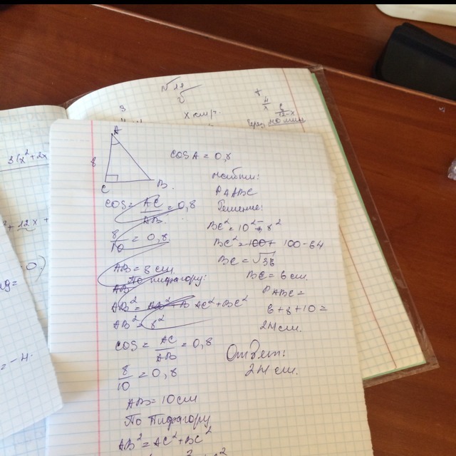 В треугольнике АВС уголС = 90 градусов ,АС = 8 см. cos угол А =0,8 .Найдите периметр треуголника .