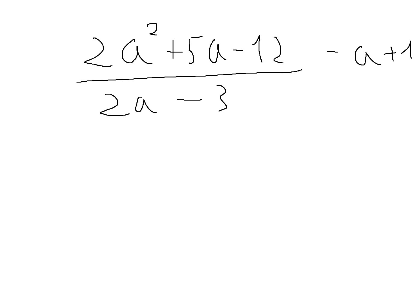 2a^2+5a-12/2a-3-a/1+1/1=2a^2+5a-12-a*(2a-3)+2a-3/2a-3=2a^2+5a-12-2a^2+3+2a-3/2a-3=5a-12+2a/2a-3=7a-12/2a-3
