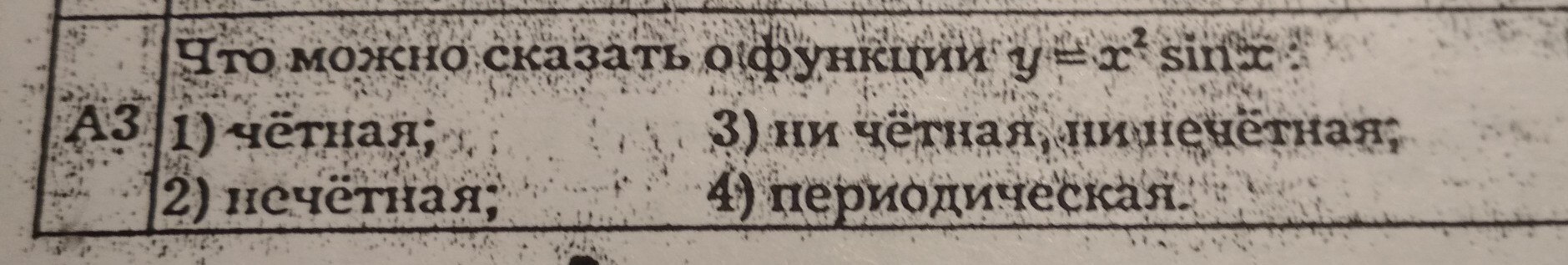 у(-х)=(-х)²sin(-x) = x²(-sinx)=-x²sinx=-y(x) четная