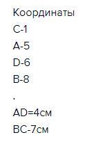 На коодинатном луче отмечены точки а(а+1),В(а+3), С(а+5),D(a+1). Единичный отрезок равен 4 см. Чему равны длина отрезков АD, BC? Каковы координаты точек удаленных от точки C на 12 см
