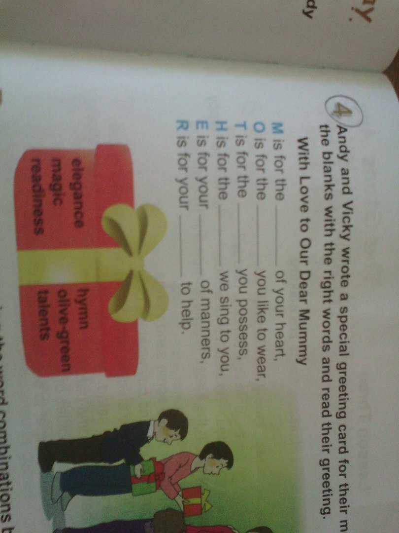 1 magic 2 olive-green 3 talents 4 hymn 5 elegance 6 readiness