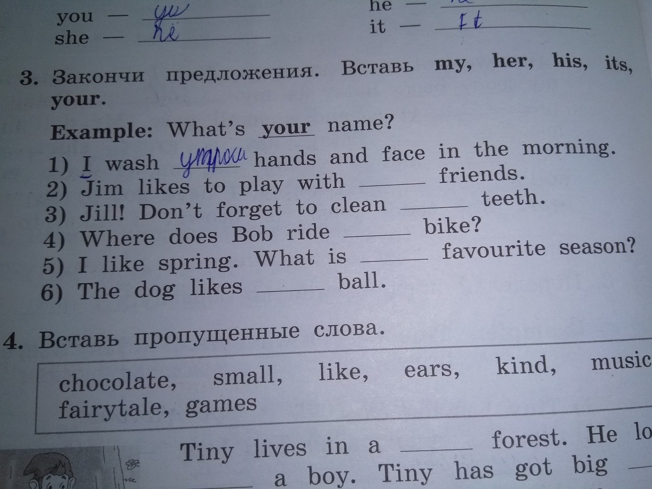 1.my 2.his 3.her 4.his 5.your 6.its