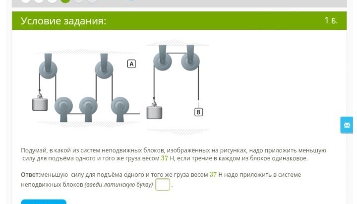 Ответ В, так как в системе с меньшим количеством неподвижных блоков меньше сила сопротивления.