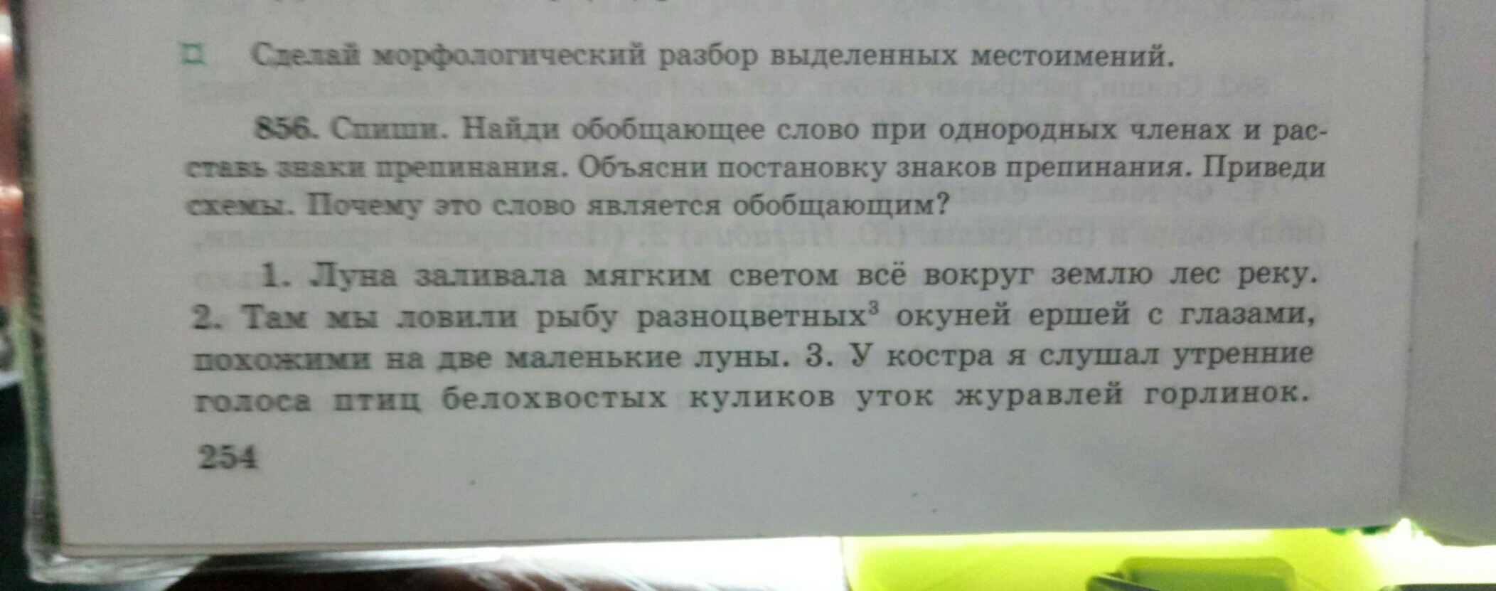 1. Луна заливала мягким светом всё вокруг : землю,лес,реку. (обобщающее слово - всё - выраж.местоимением )