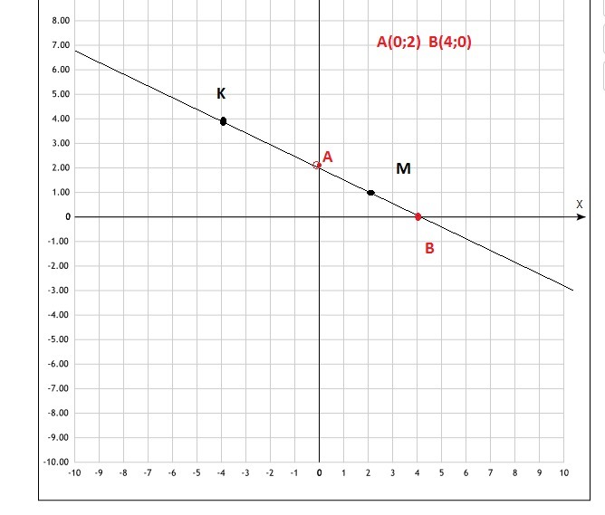 На координатной плоскости проведите прямую через точки K(-4;4) и M(2;1) Запишите координаты точек в которых эта прямая пересекает координатные оси