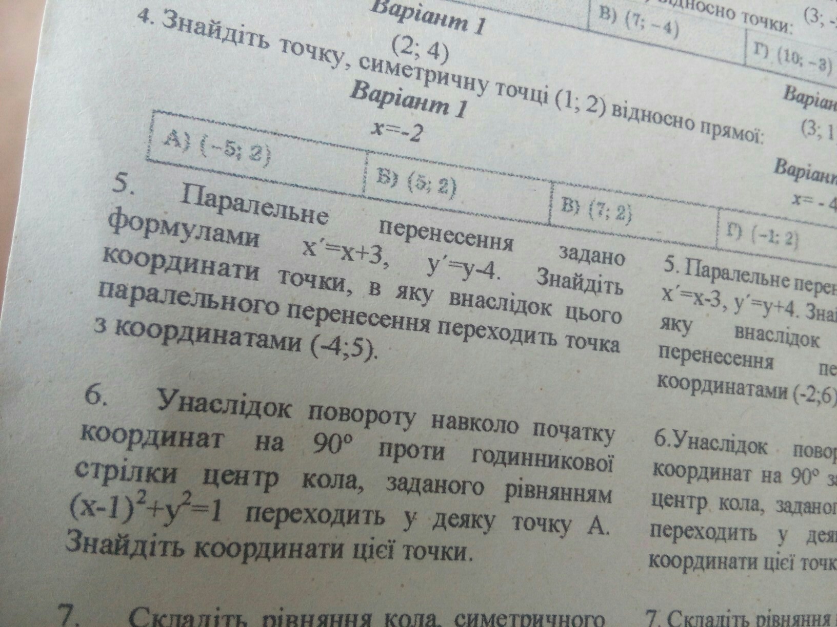 По заданным формулам вычисления новых координат любой точки: х'=-4+3=-1, у'=5-4=1