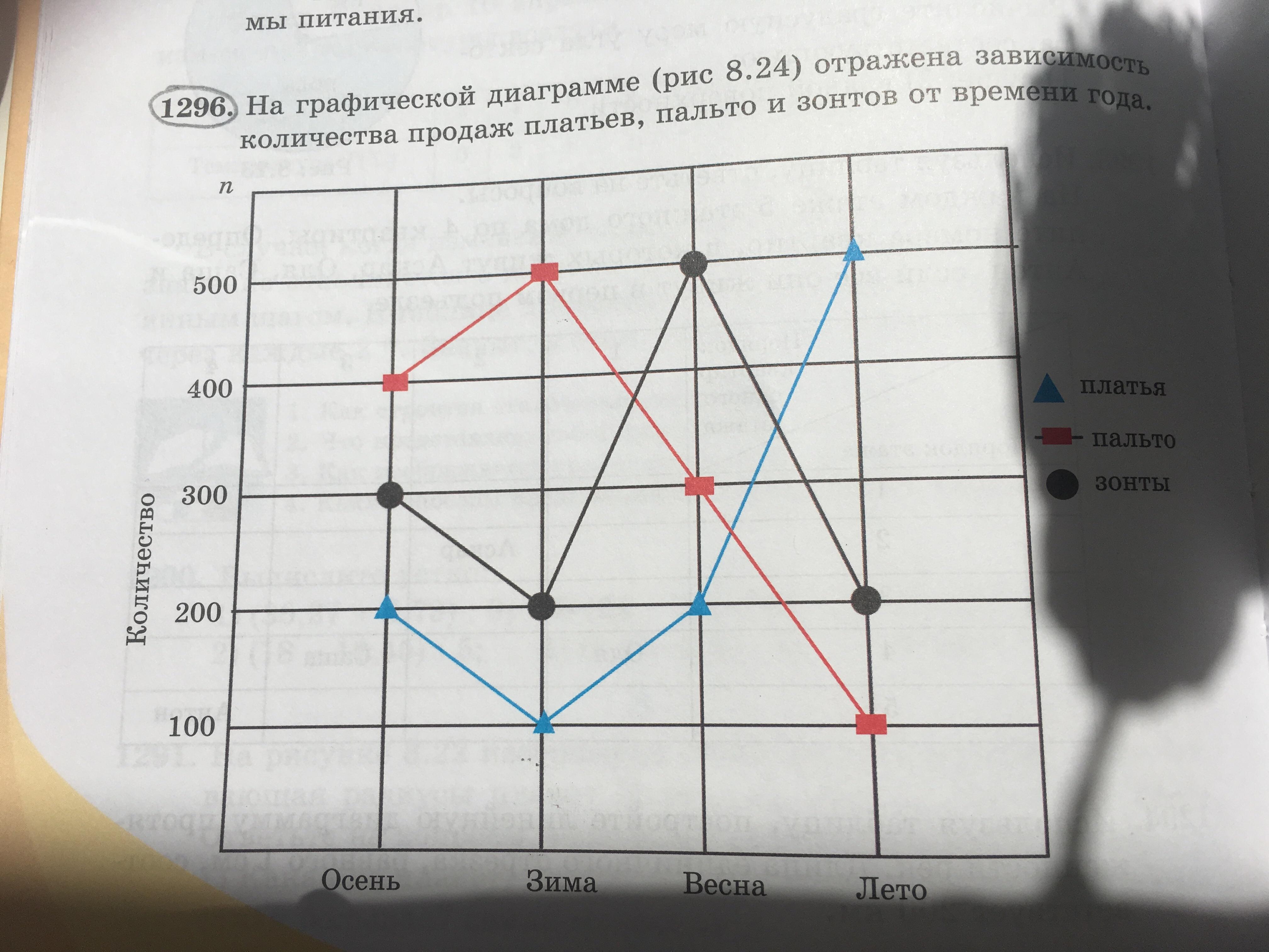 на графической диаграмме рисунок 8.24 отражена зависимость количества продаж платьев пальто и зонтов от времени года ответьте на вопросы 1 )