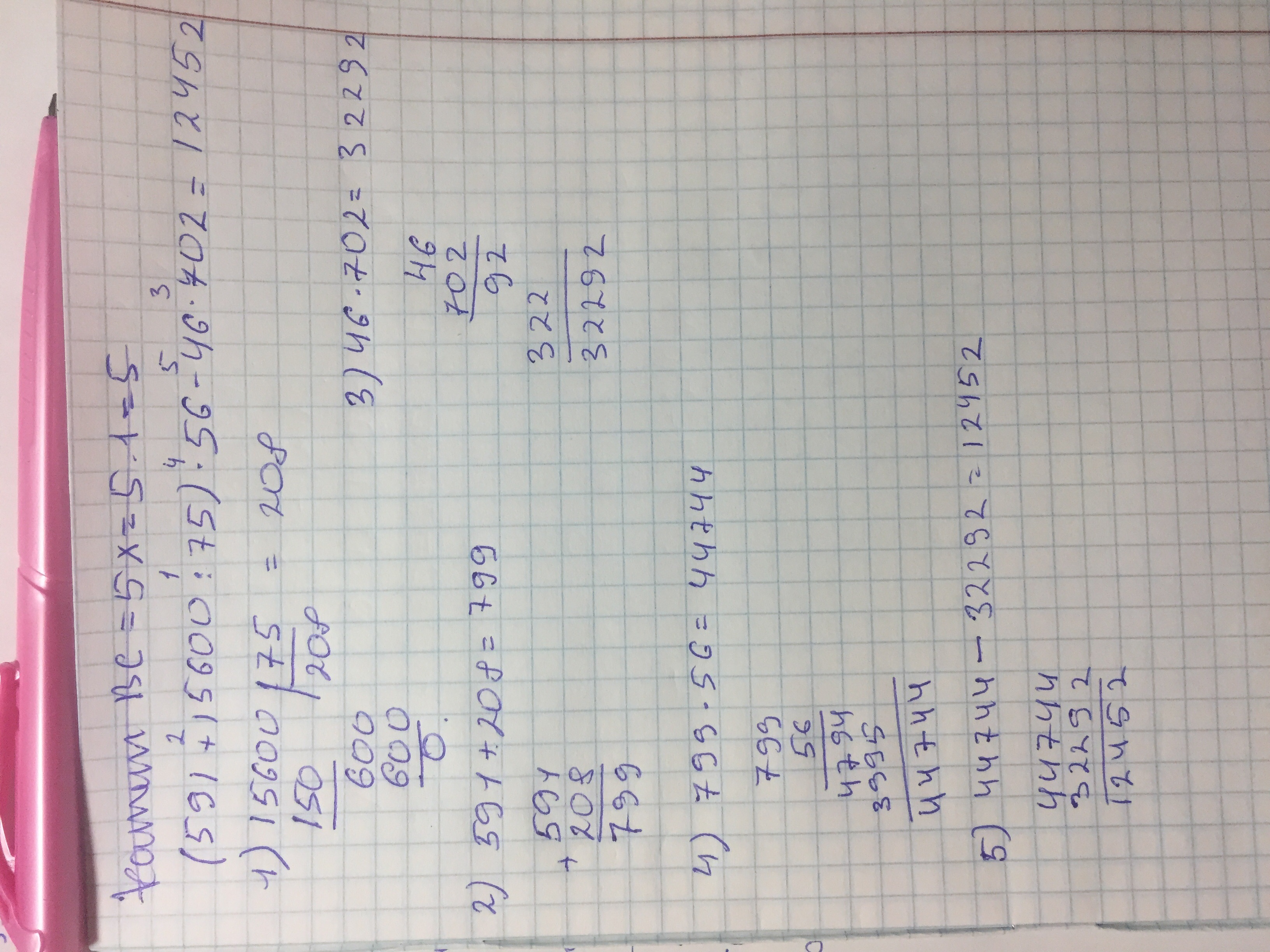 Сначала все в скобочках. Потом 46*702 равно 32292. То что в скобочках умножаем на56 равно 44744. Потом 44744-32292= 12452