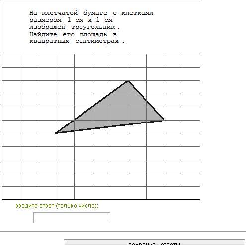 На клетчатой бумаге с клетками размером 1см на 1см изображен треугольник. Найдите его площадь в квадратных сантиметрах.