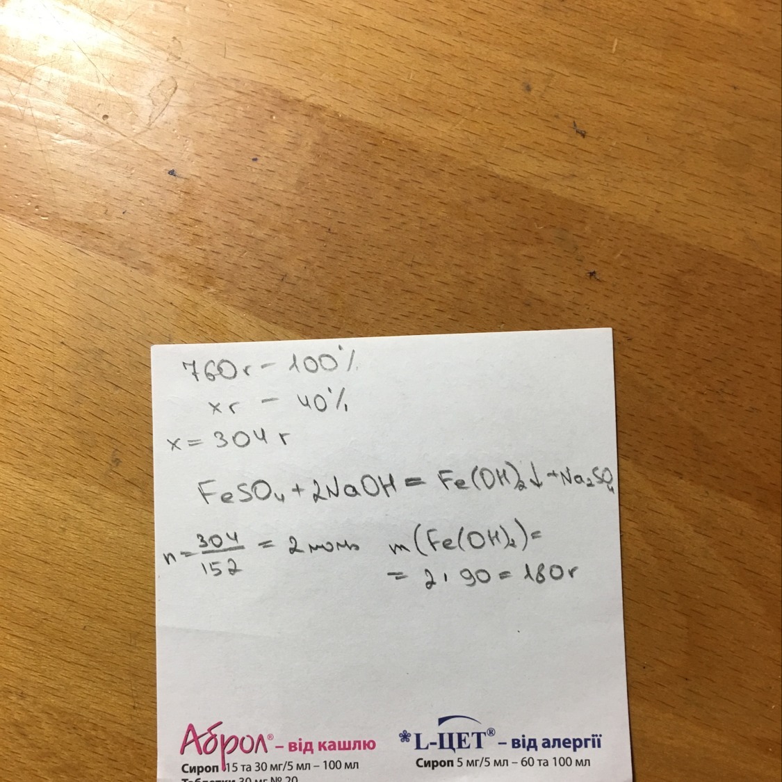 какова масса Fe(OH)2, образовавшегося в результате реакции 40% раствора FeSO4, массой 760 г, с расвором NaOH