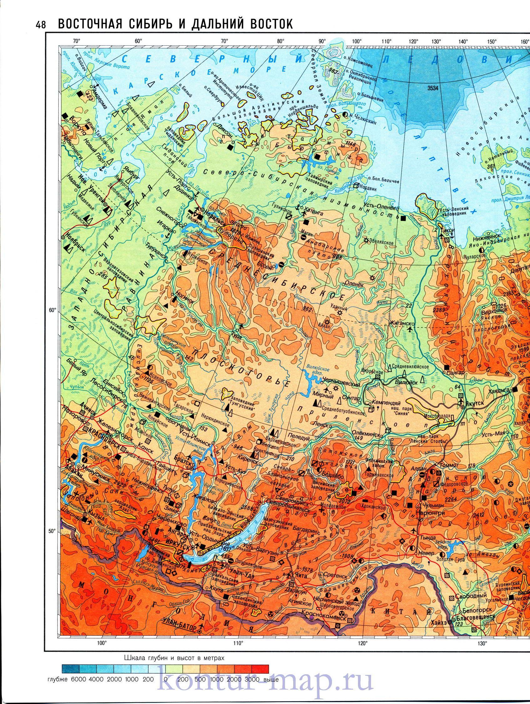 3.Рельеф .Большая часть Восточной Сибири расположена на Среднесибирском плоскогорье, на севере это низменности, на востоке и юге это высокие горы ( Алтай, Саяны, Становой хребет, Алданское нагорье).Высшая точка-это гора Белуха 4506 м.В горах расположено много межгорных котловин (Минусинская, Кузнецкая, Байкальская).