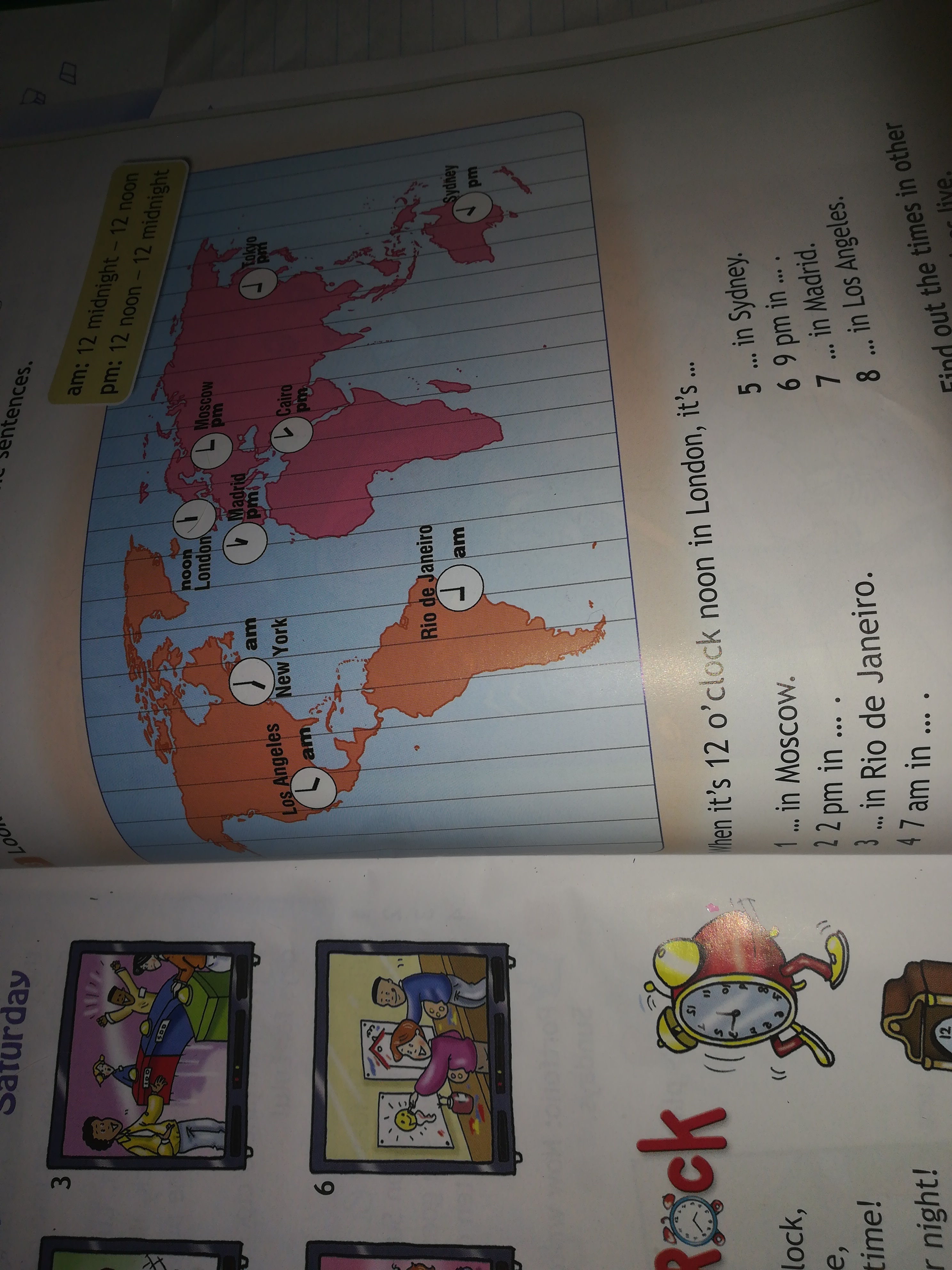 7) 1 pm in Madrid . (час дня, 13:00)