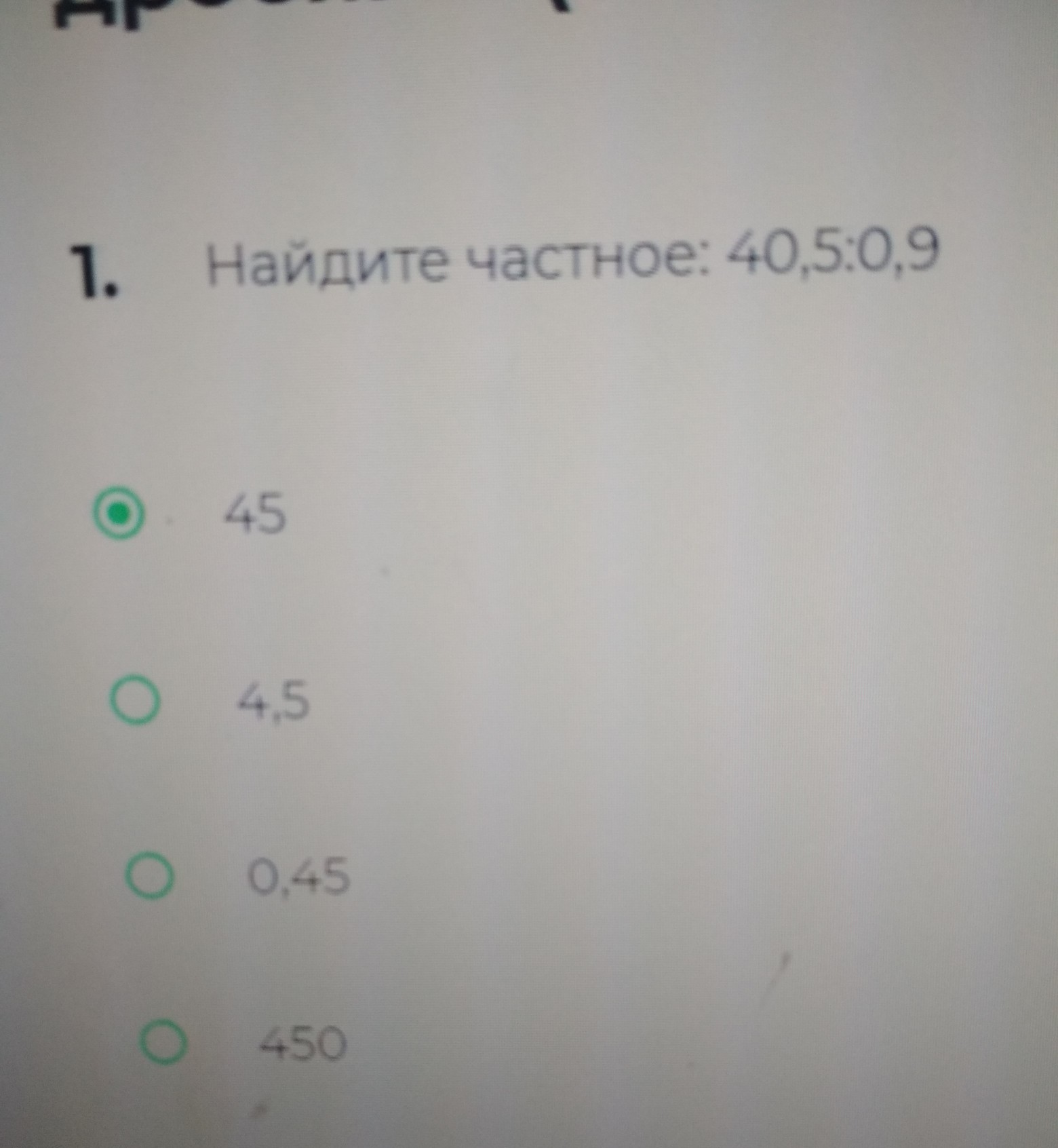 40,5 разделить на 0,9 будет 45