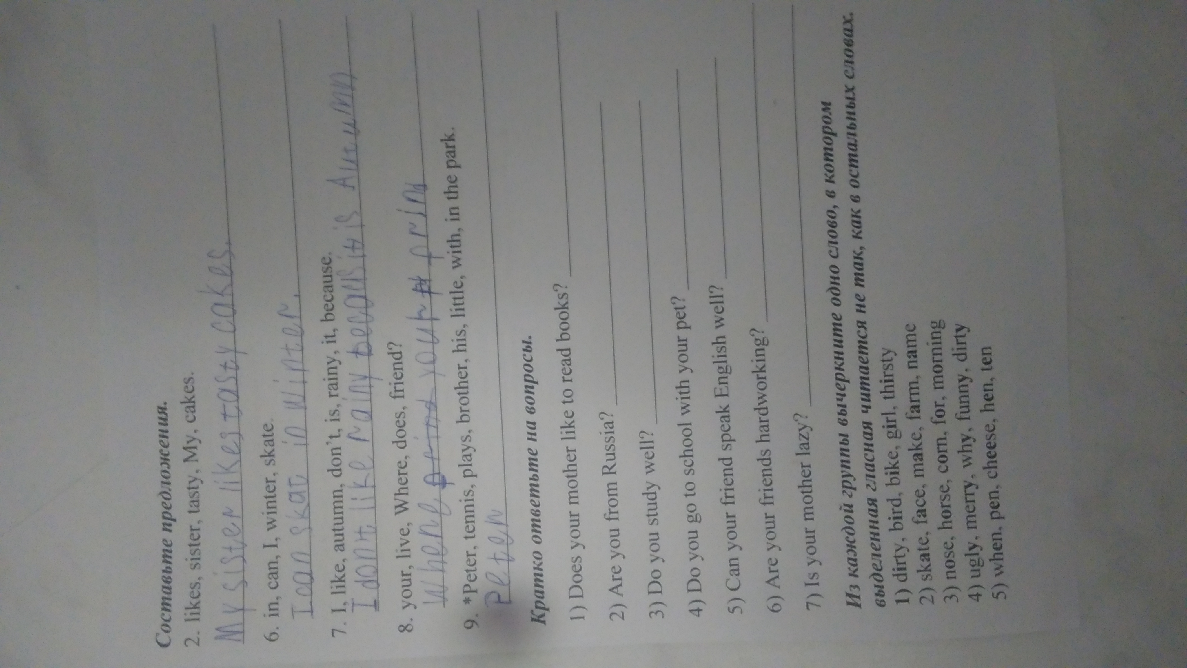 I don't like autumn because it's rainyWHere does your friend live?Peter plays tennis with his little brother in the park