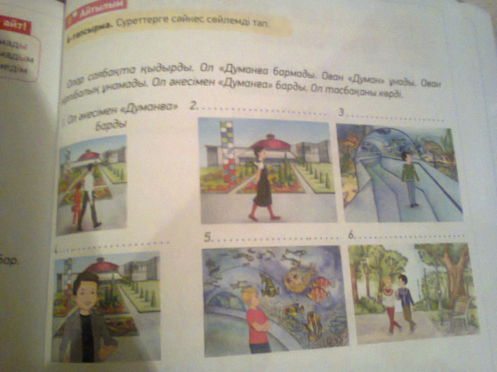 2.Ол думанға бармады. 3.Ол тасбақаны корди. 4.Оган думан унады. 5.Оған итбалық унамады. 6.Олар саябакта кыдырып.