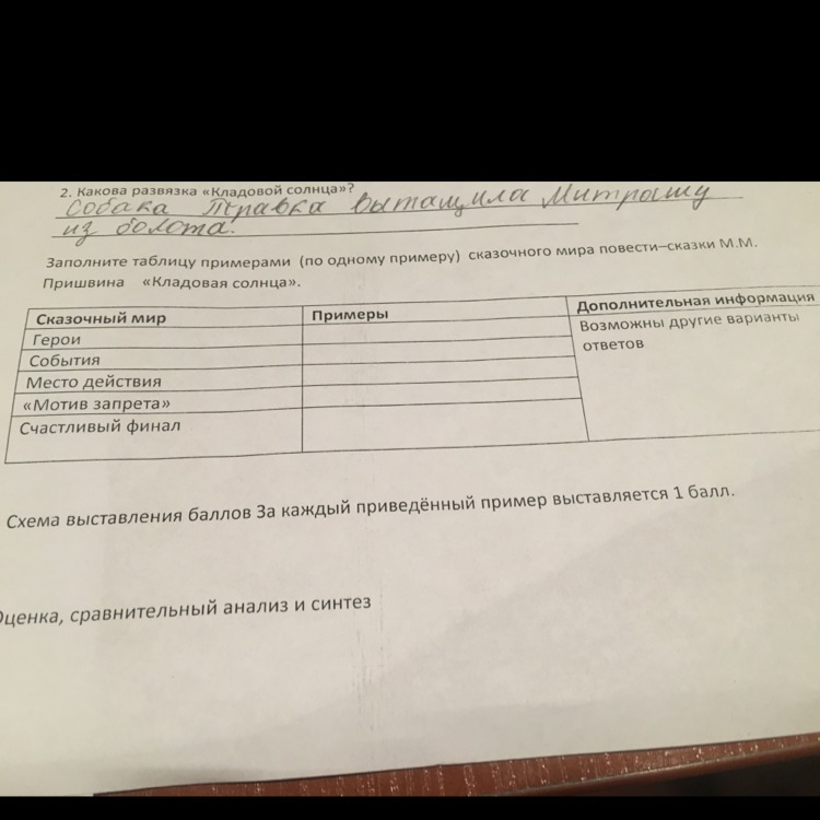 Заполните таблицу примерами (по одному примеру) сказочного мира повести сказки М.М Пришвина «кладовая солнца»