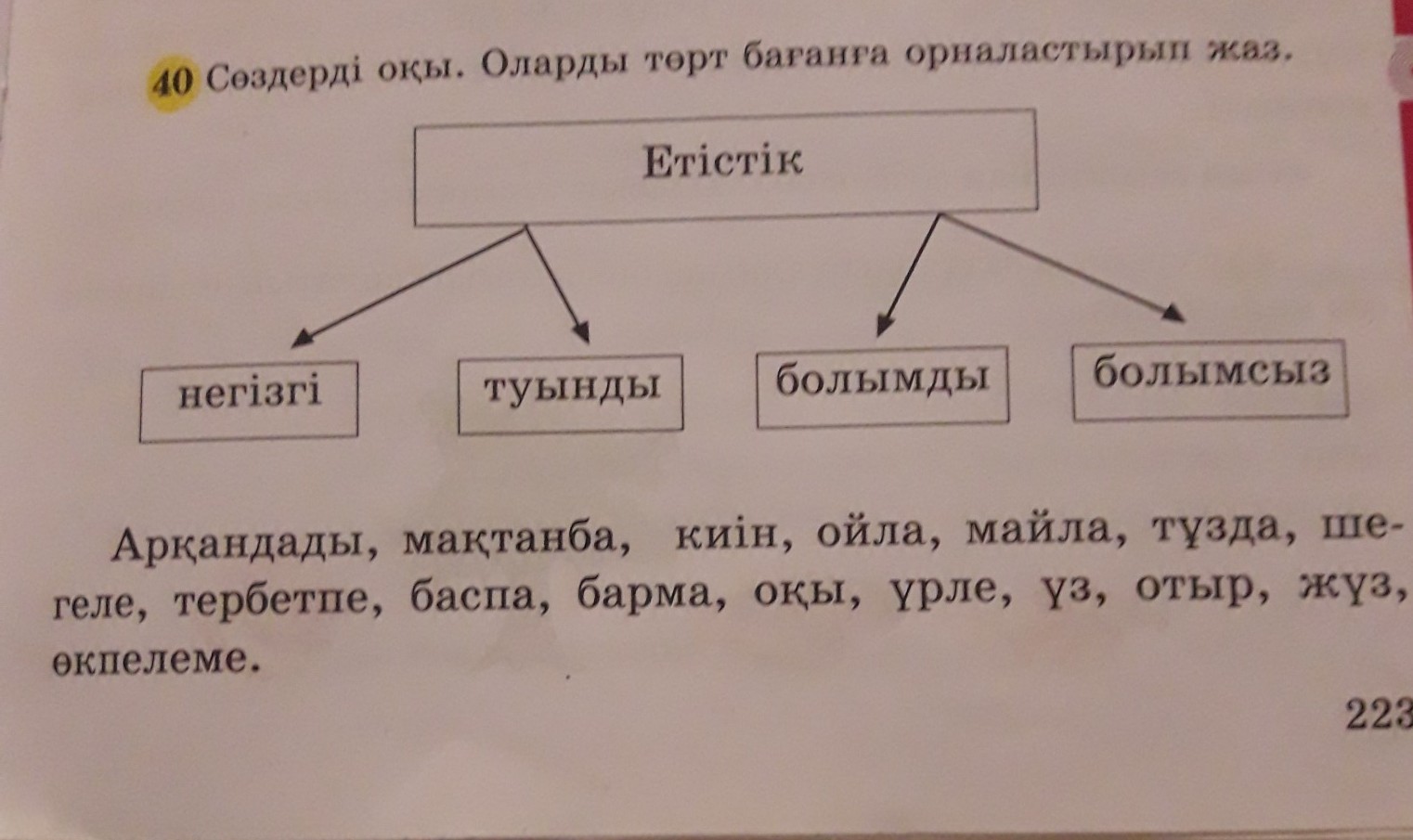 туынды:шегеле,үрле,ойла,киін, майла,тұзда,киін,оқы