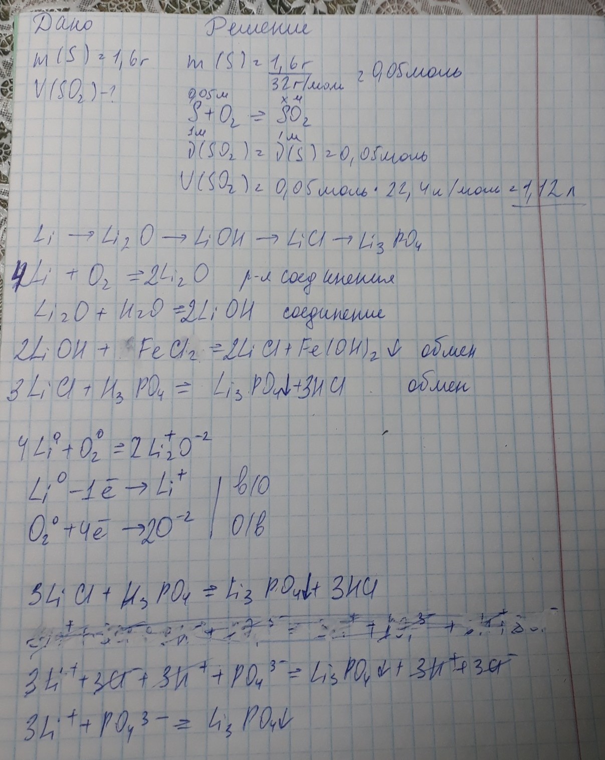 Li → Li 2O→ Li OH → LiCl → Li3PO4