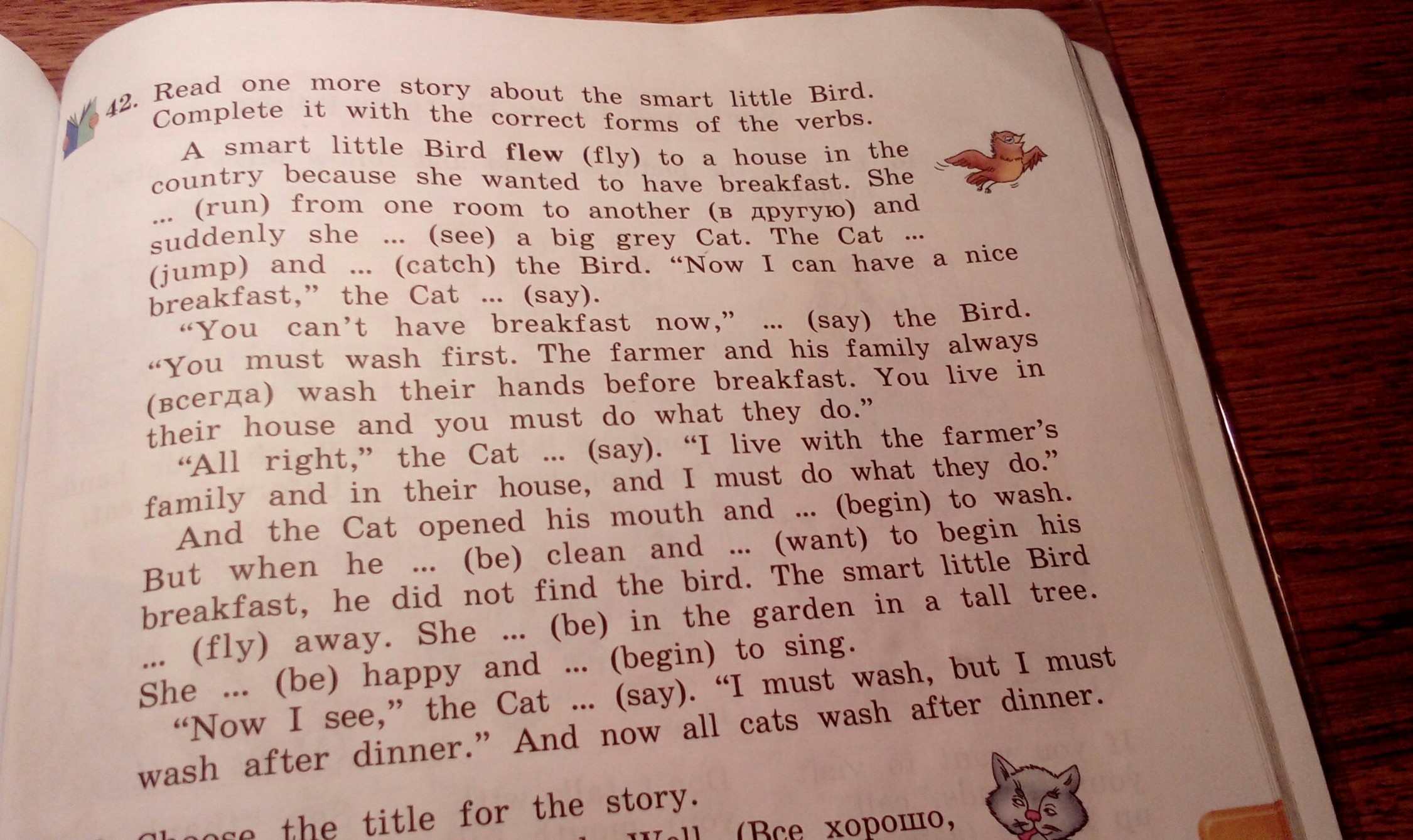 Flew, run, saw, jumped, caught, said, said, said, began, was, wanted, flew, was, was, began, said