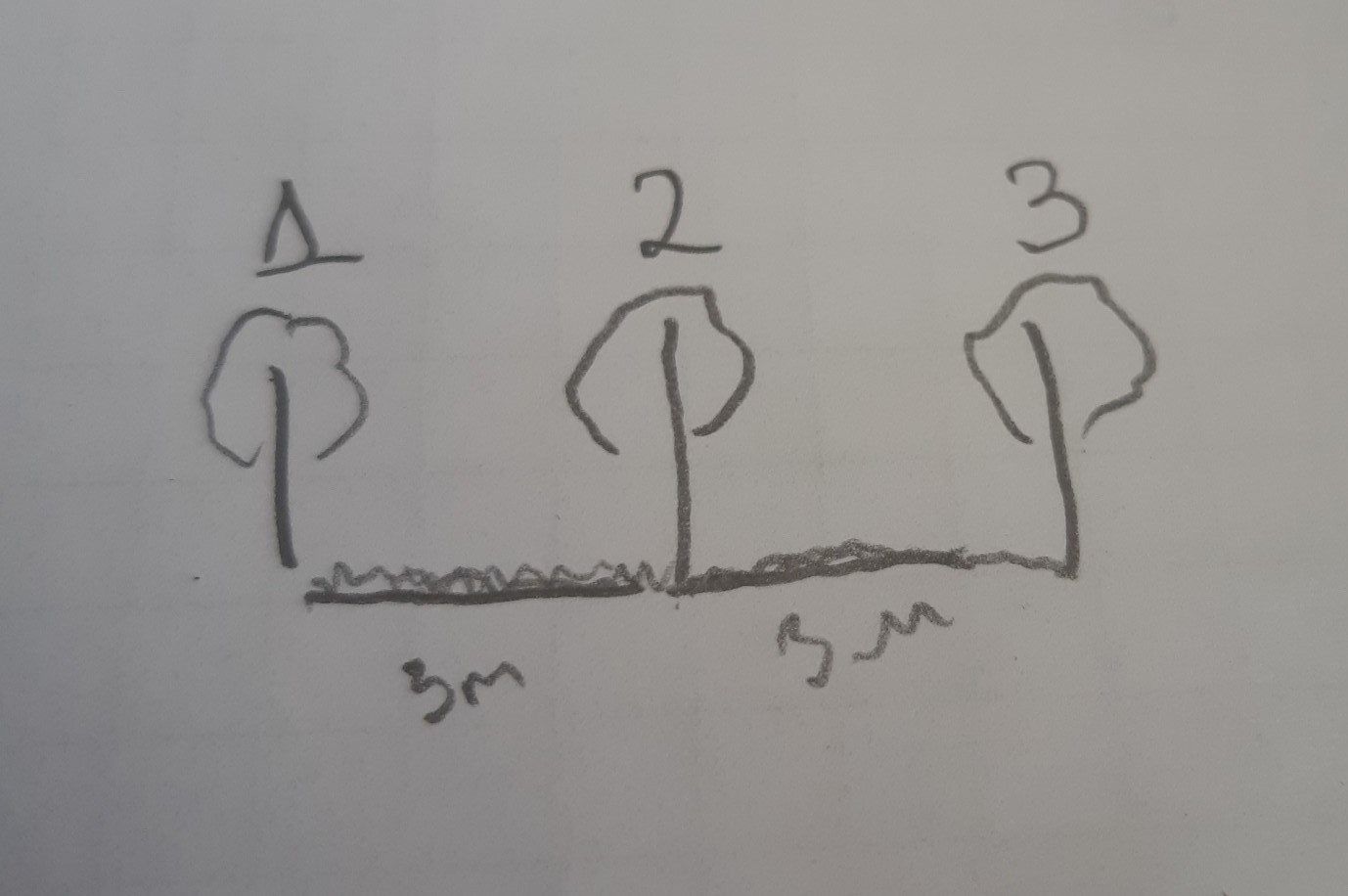 Вдоль парковой дорожки через каждые 3 м посажены деревья. Сколько метров от первого до третьего дерева? от третьего до восьмого?