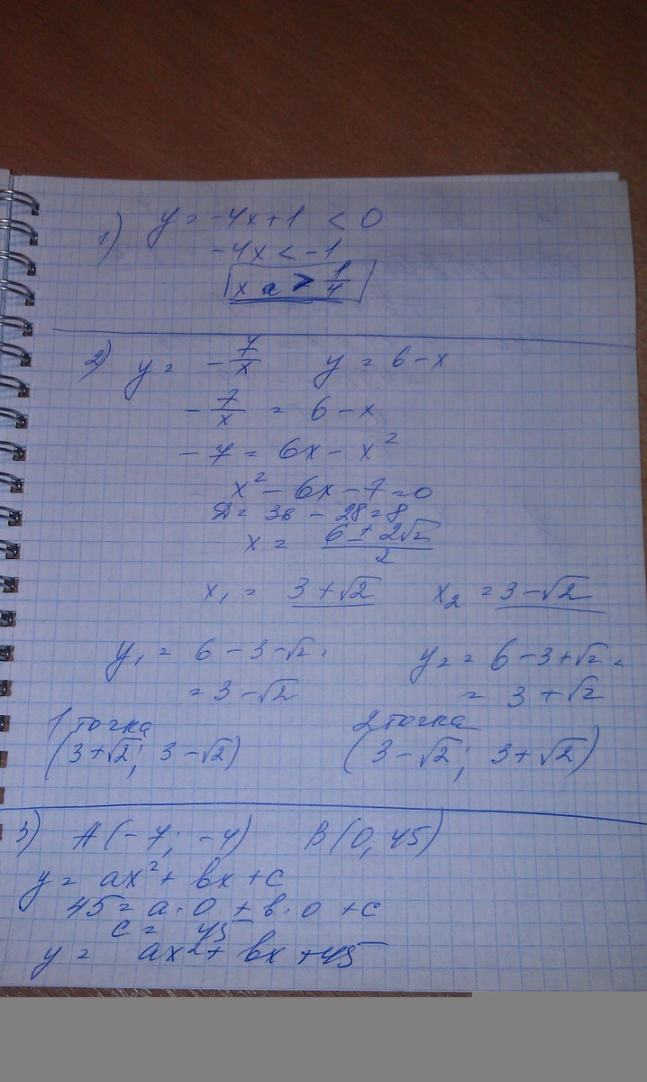 2.Найдите координаты точек пересечения графиков функций y = - 7/x и y = 6-x .