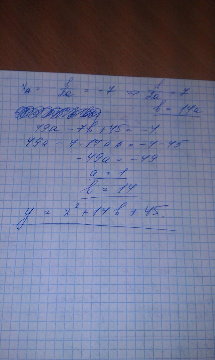 3.Задайте формулой квадратную функцию, график которой - парабола с вершиной в точке А( -7; -4), проходящая через точку В(0;45).