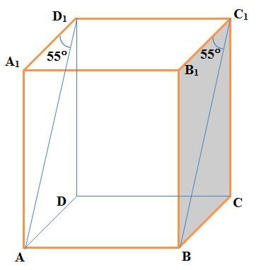 В прямоугольном параллелепипеде ABCDA1B1C1D1 угол BC1B1=55, найдите угол между прямыми C1B и AA1